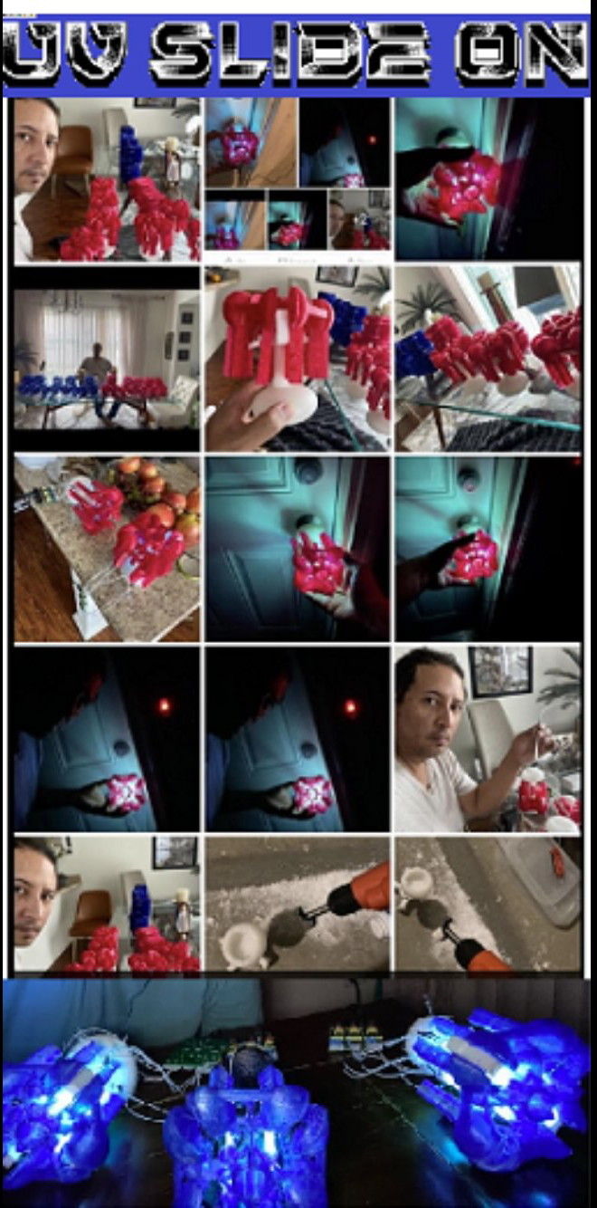 Design Research Gallery Design and Research Gallery Earlier versions of UV Railed Dooknob Graphic Design UVSlide On Garage Experiments: Home 3d Print Office Wiring Assembly Boxing Group One: Earlier versions of UV Railed Doorknob. Group 2: Graphic Design over 15 months. Group 3: Covid 19 mandates UV Slide On Group 4: Wiring Assembly Boxing